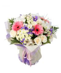 Прекрасные свежие букеты , в подарок конфеты и шарики !!! Вовремя доставили !!! Рекомендую!!!